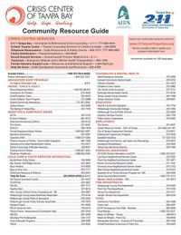 Do you or someone you know need help? Homelessness, medical or food assistance, abuse, addiction, childcare, etc? Below is a list of resources compiled by Crisis Center of Tampa Bay. Print this and keep for easy reference should you find yourself or others in need.